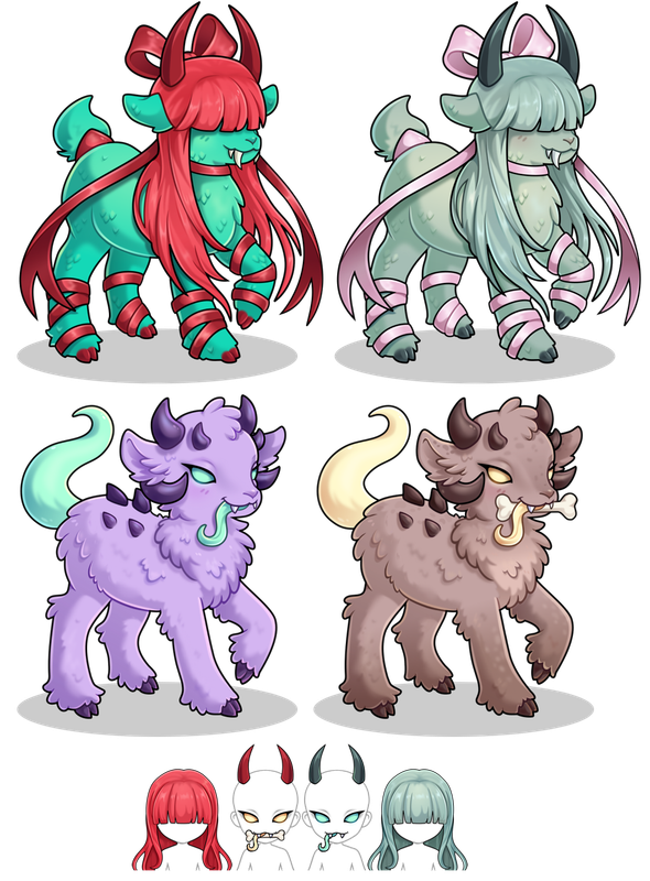 Monster Box Mimic Goatling set highres! Original member designs by TKO (first set) and Dirgeserval (second set). Additional items and staff redraw by Bumblebunny. Coming soon to the Eerie Estate!